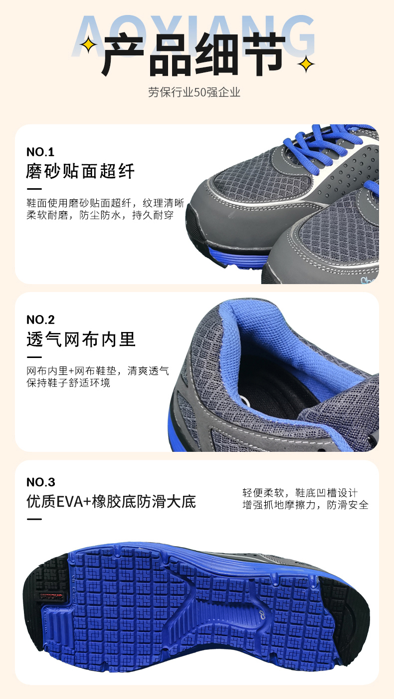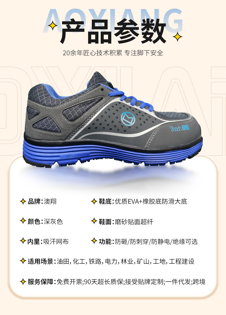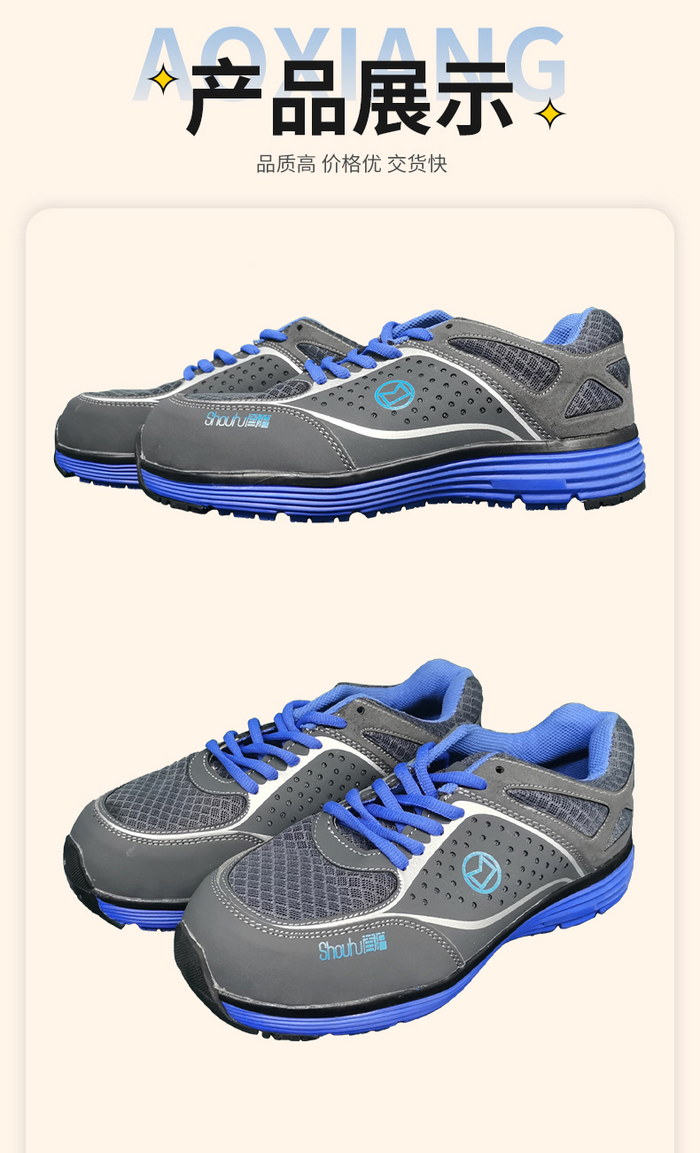 奧翔勞保鞋價格實惠,鞋子很舒服,很滿意。 外觀材質:鞋子外觀看起來不笨重很好看,而且顏色和圖片上一致。 商品品質:鞋子材質穿上很軟,很舒服,而且也不捂腳。勞保鞋子還挺時尚,感謝老板送了4雙鞋墊,天氣熱了,我這旱鴨子腳??,不曉得會不會熏暈室友哈!