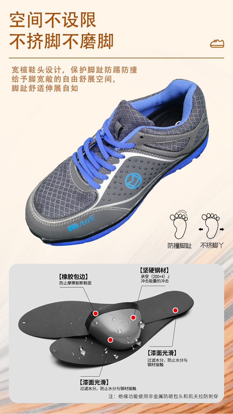 在建筑工地上做事地面上??經常會有一些釘子之類的雜物,之前有時候沒注意還被刺到過腳??。看了這款勞保鞋這么時尚鞋底還防刺穿??,收到貨果然跟描述的一樣沒讓我失望?,再也不用擔心工作的時候會??刺傷到腳了 收到馬上穿去上班,??腳底挺軟,沒那么厚重,有點運動鞋的感覺??。然后鞋底設計的也很好??。完全符合我對勞保鞋的所有要求??,希望質量也??很好。