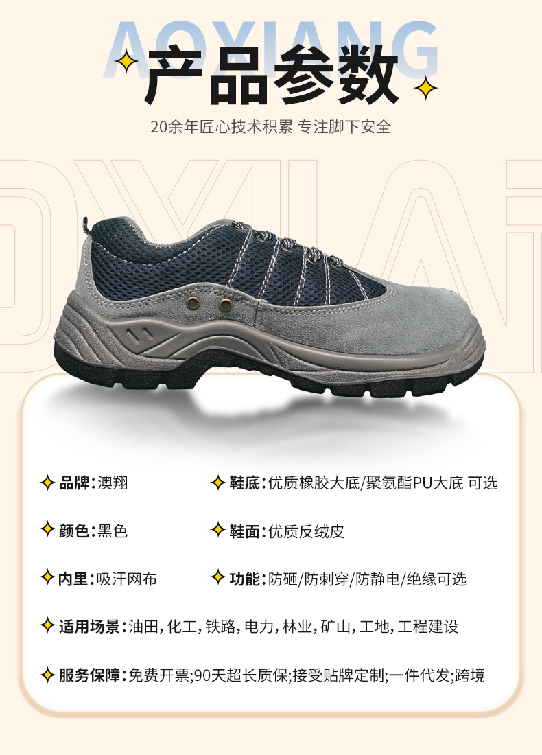 奧翔勞保鞋價格實惠,鞋子很舒服,很滿意。 外觀材質:鞋子外觀看起來不笨重很好看,而且顏色和圖片上一致。 商品品質:鞋子材質穿上很軟,很舒服,而且也不捂腳。勞保鞋子還挺時尚,感謝老板送了4雙鞋墊,天氣熱了,我這旱鴨子腳??,不曉得會不會熏暈室友哈!