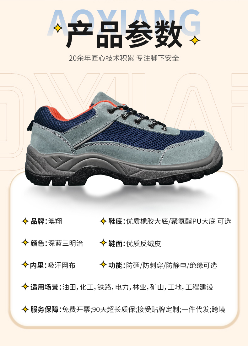 奧翔勞保鞋價格實惠,鞋子很舒服,很滿意。 外觀材質:鞋子外觀看起來不笨重很好看,而且顏色和圖片上一致。 商品品質:鞋子材質穿上很軟,很舒服,而且也不捂腳。勞保鞋子還挺時尚,感謝老板送了4雙鞋墊,天氣熱了,我這旱鴨子腳??,不曉得會不會熏暈室友哈!